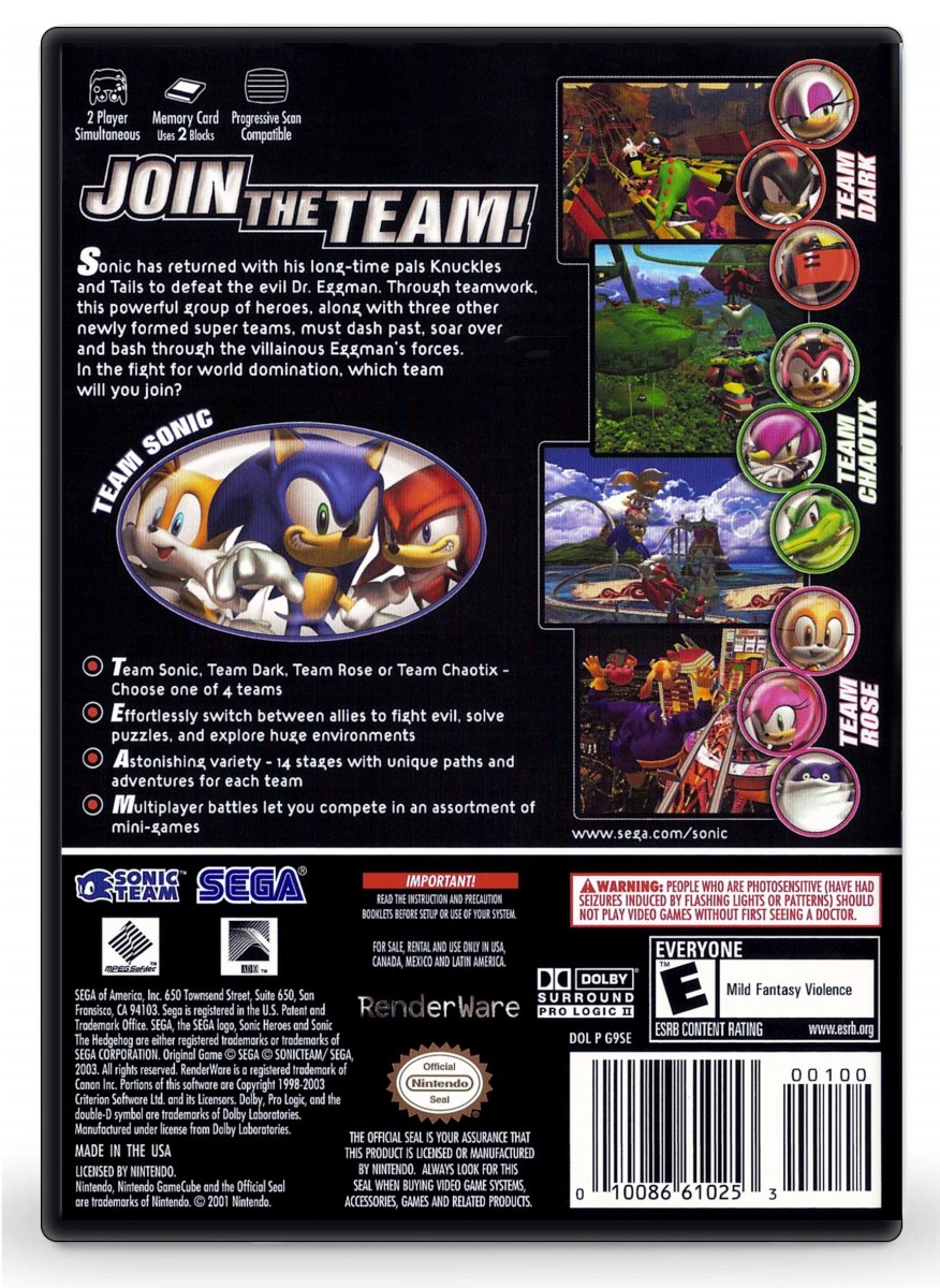 - Team Sonic, Team Dark, Team Rose or Team Chaotix - Choose one of 4 teams.