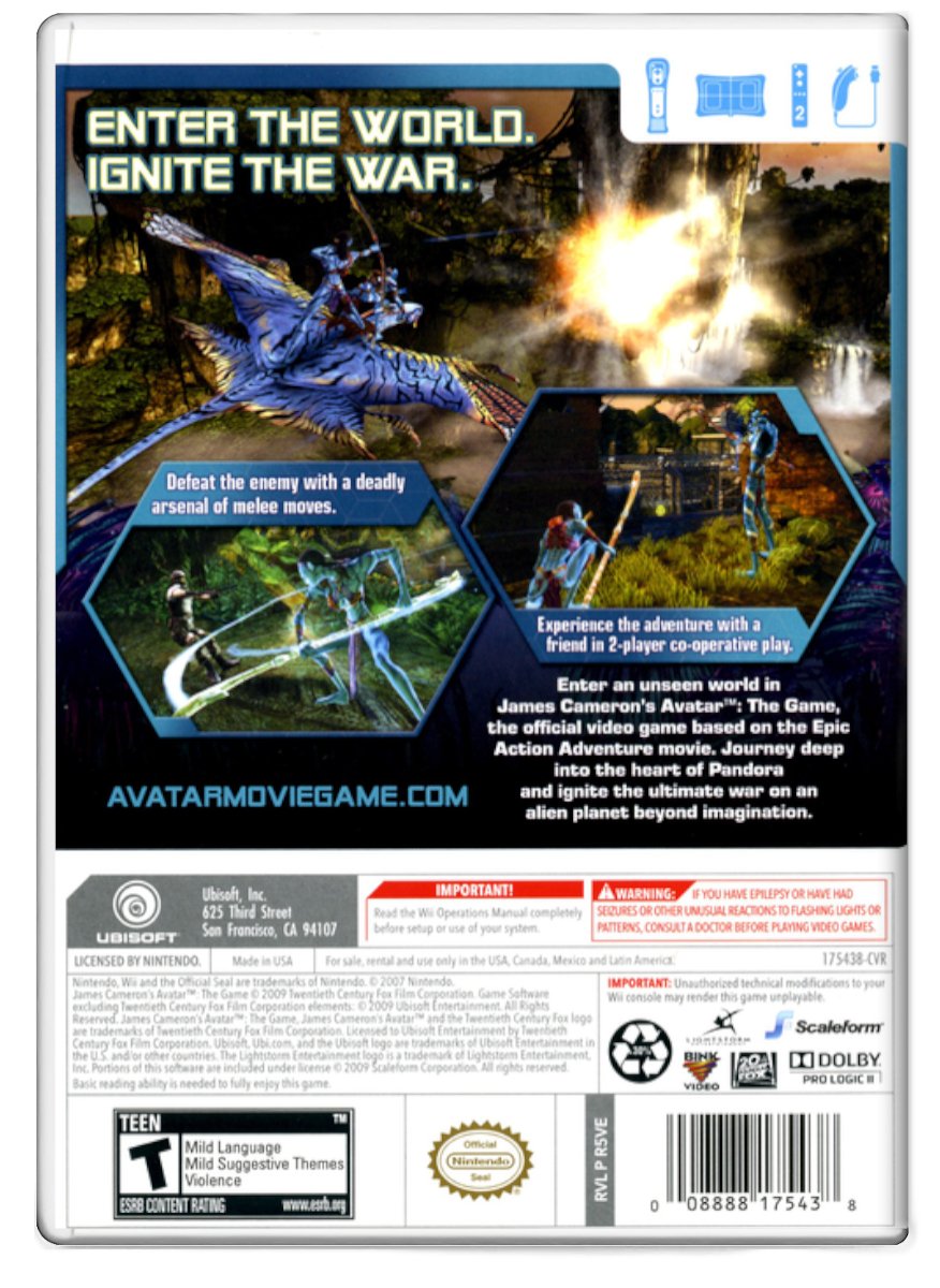 Enter an unseen world in James Cameron's Avatar: The Game, the official video game based on the Epic Action Adventure movie. Journey deep into the heart of Pandora and ignite the ultimate war on an alien planet beyond imagination.
