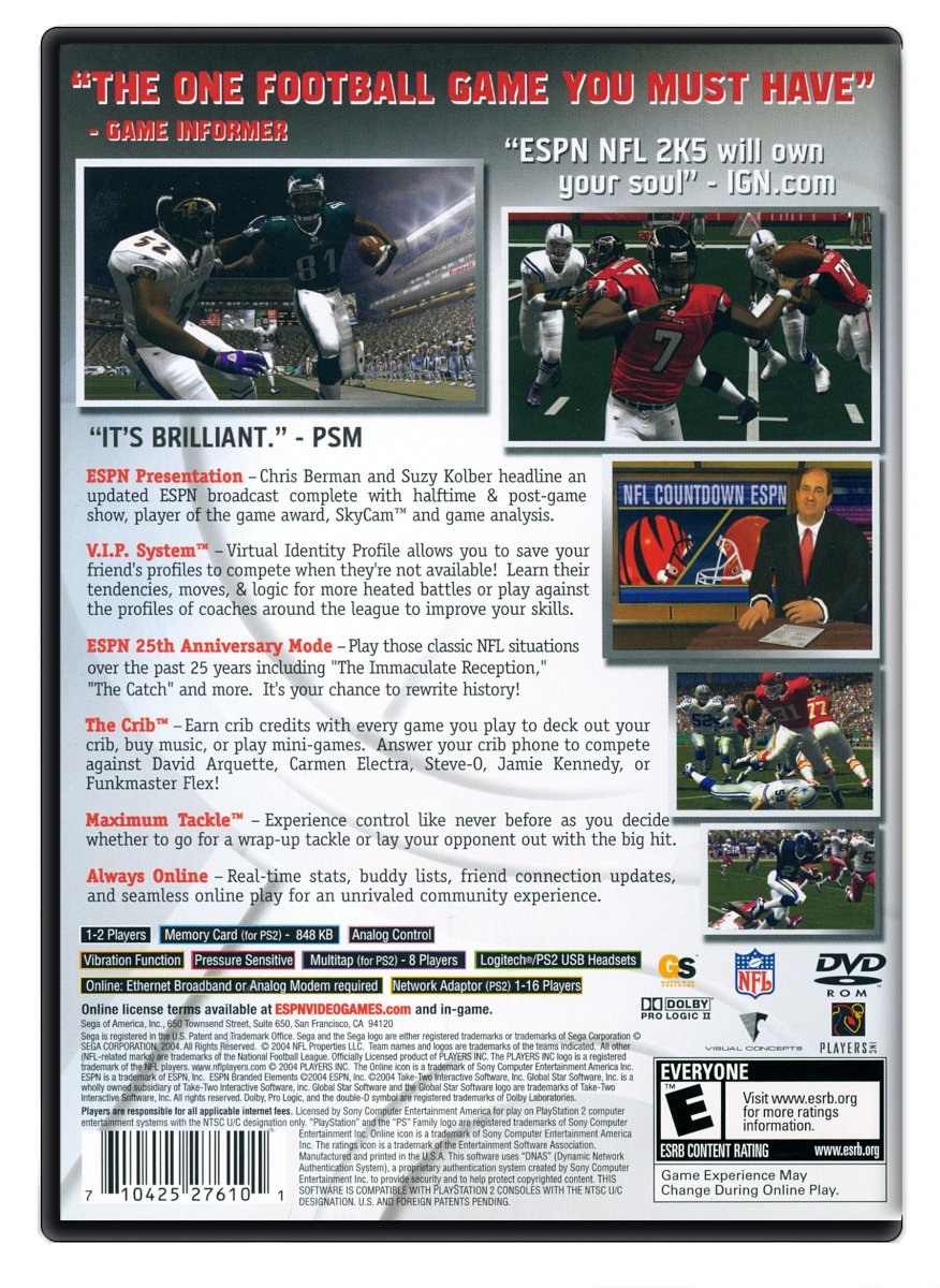 "ESPN NFL 2K5 will own your soul" - IGN.com