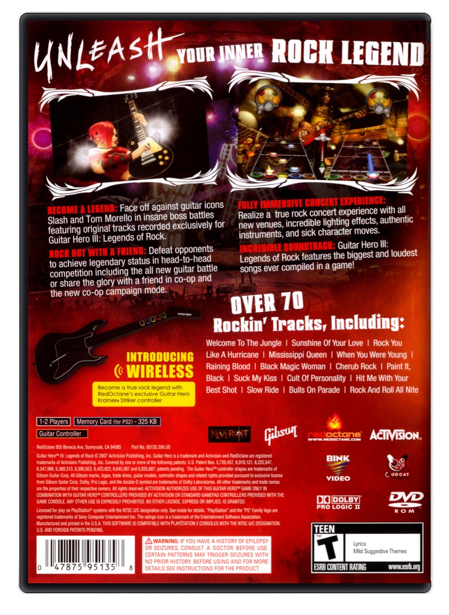 Become a legend: Face off against guitar icons Slash and Tom Morello in insane boss battles featuring original tracks recorded exclusively for Guitar Hero III: Legends of Rock.