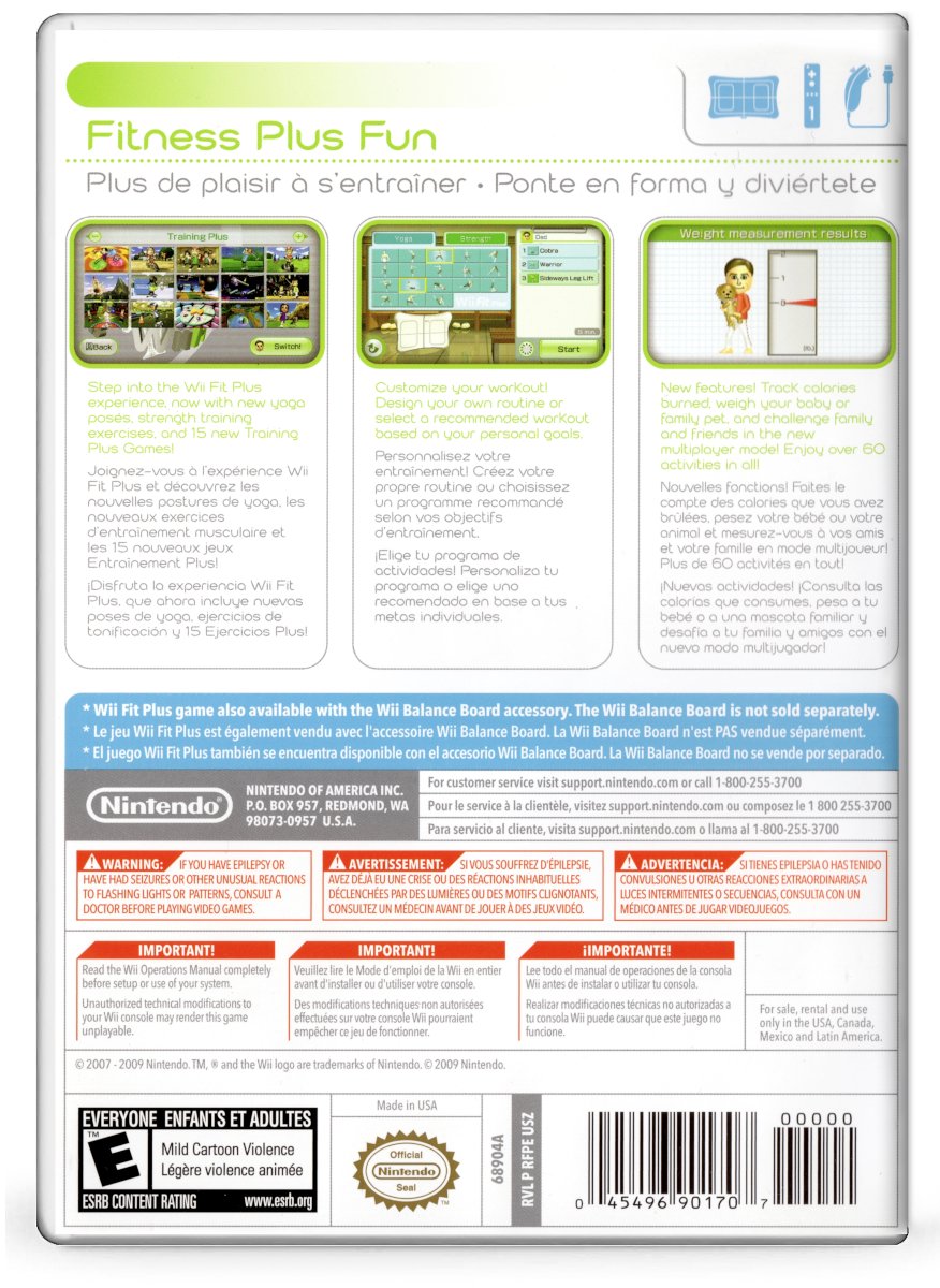 Wii Fit Plus game also available with the Wii Balance Board accessory. The Wii Balance Board is sold separately.